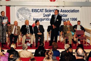 The EISCAT Svalbard Radar (ESR), in Longyearbyen, was inaugurated on August 22, 1996. The participants included 200 guests from 12 countries, including the president of the Norwegian Parliament and officials from the EISCAT member countries, as well as representatives of the international scientific community.
