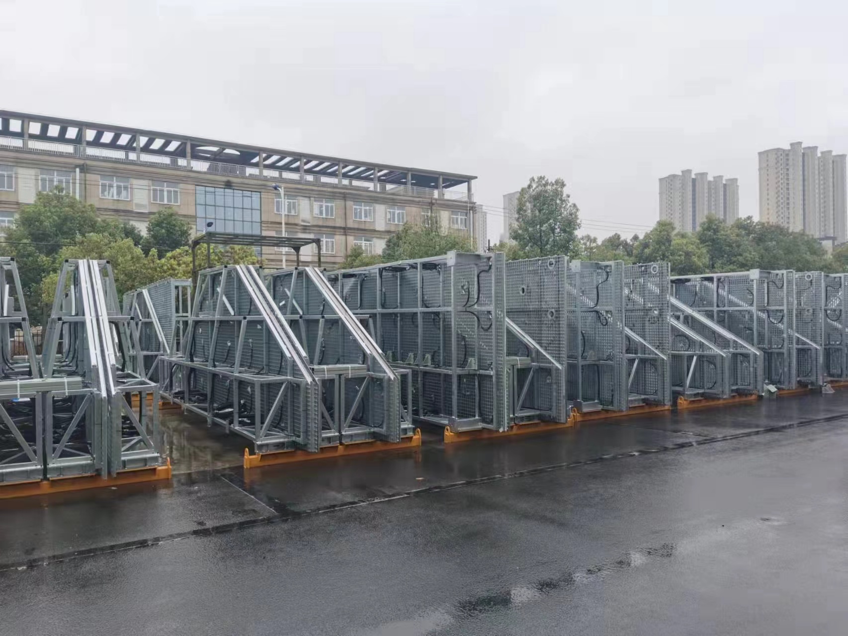 Each AU comprise of an equipment container and an antenna frame holding the antenna elements mounted on top of the container. The antenna elements to be installed on the frames are stored inside the containers until needed.