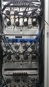 Above: the transmitter rack showing three of the first article transmit units (part of Sub-Array Transmitter delivery) and the, now delivered, two first article transmitter control units (part of the Pulse and Steering Control Unit delivery). The first article receiver (part of the First Stage Receiver Unit delivery) is located in a separate rack.