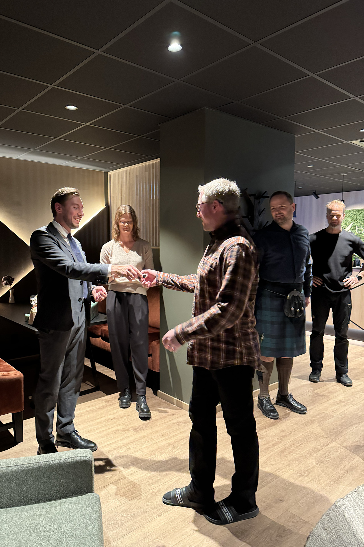 Pins for 2 and 5 years in the company are awarded to the employees who deserved them. Then one of us was celebrated for 40 years at EISCAT. That is really something.